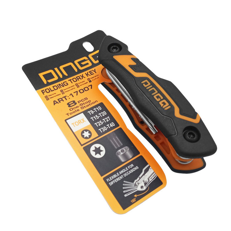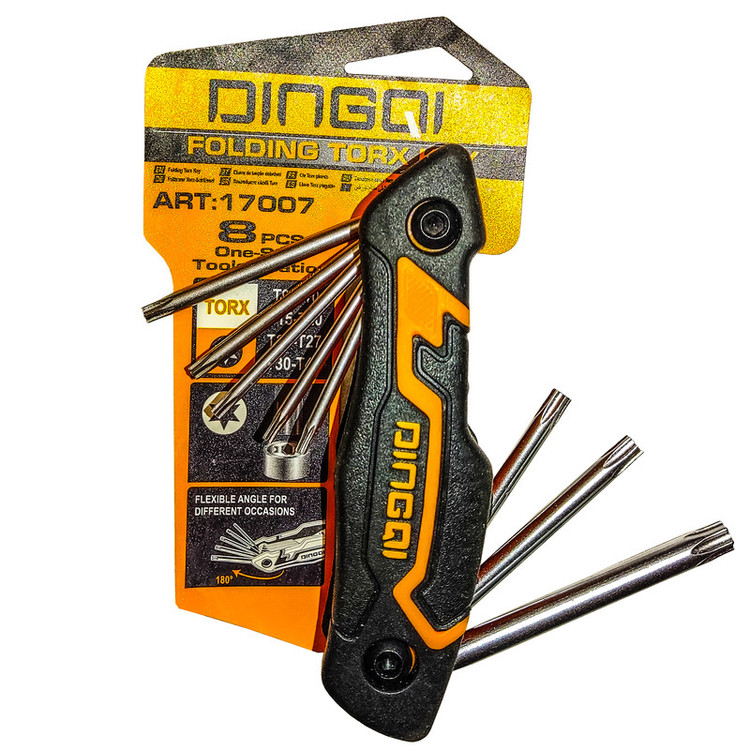 آلن ستاره ای 8 عددی دینگشی DINGQI آچار آلن آچاری با مقطع ستاره ای که مخصوص باز و بسته کردن پیچ آلن میباشد.به خاطر شکل خاص انواع پیچ آلن باز و بسته کردن آن ها با آچار های معمولی امکان پذیر نمیباشد و برای این منظور از انواع آچار آلن استفاده میشود.و آلیاژ به کار رفته در ساخت آن ها معمولا کروم-وانادیوم میباشد.سخت كاري شده و حرارت ديده شده جهت استفاده مداوم در مصارف صنعتي داراي خواص مكانيكي ثابت در دماهاي مختلف میباشد.