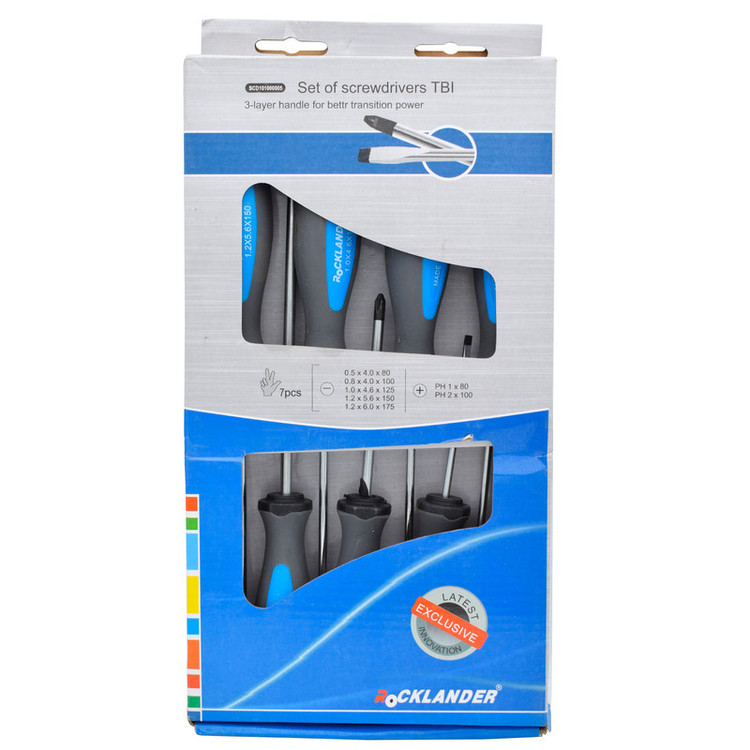 شرکت راکلندر یکی از سازندگان بزرگ پیچ گوشتی در کشور آلمان می باشد که محصولات آن شباهت زیادی به یونیور دارد . ست پیچ گوشتی 7 عددی مدل SCD101000005 از محصولات برند راکلندر می باشد که از پنج پیچ گوشتی دوسو و دو پیچ گوشتی چهارسو تشکیل شده است . تیغه این محصول از جنس فولاد کروم وانادیوم هست که با فرآیند های خاص به طور ویژه ای سخت کاری شده است تا دوام آن را در بلند مدت تضمین نماید. همچنین نوک تیغه ها با روکش کروم محافظت شده و به رنگ سیاه در آمده تا در برابر خوردگی و فشار مقاوم باشند. دسته این محصول به شکل از روکش سه گانه و ارگونومیک ساخته شده است تا در دراز مدت موجب راحتی کار با آن و عدم خستگی دست شود. در انتها این پیچ گوشتی سوراخی در نظر گرفته شده که جهت آویزان کردن آن در نظر گرفته شده که موجب نظم بخشیدن به کارگاه شما شود.